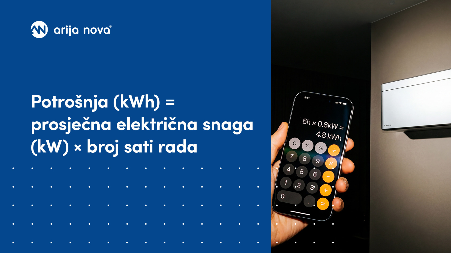 Potrošnja (kWh) = prosječna električna snaga (kW) × broj sati rada